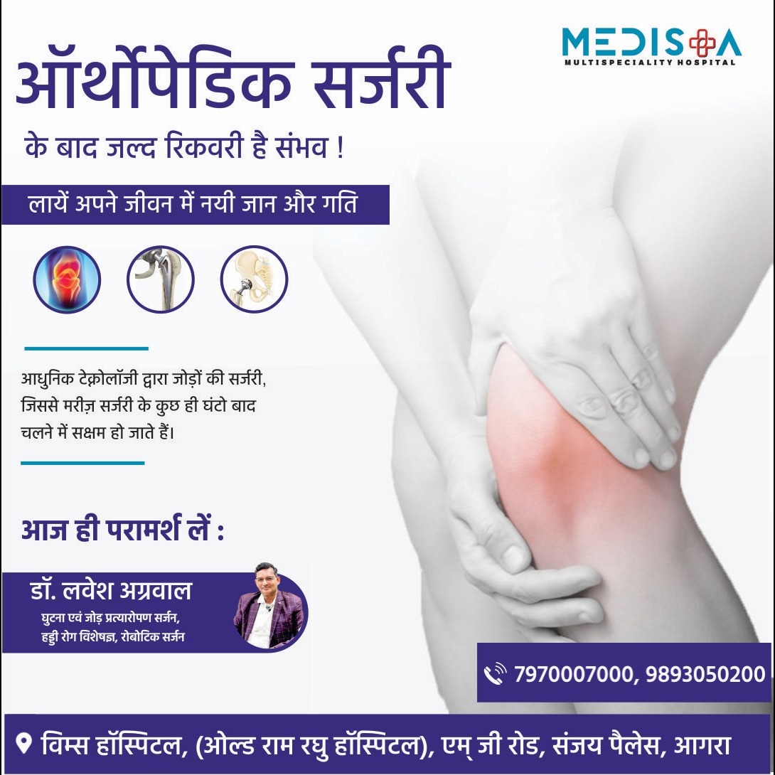 Knee pain can affect everything you do - from climbing stairs and walking long distances to simply standing up after rest. For many people, this pain slowly takes away their independence and comfort. When medication and exercises stop helping, it’s time to look for a long-term solution. At Medista Hospital, Agra, under the expert guidance of Dr. Lavesh Agrawal, knee replacement surgery has given countless patients a new start - free from pain, stiffness, and limitation. Dr. Lavesh Agrawal is one of the most trusted orthopedic and joint replacement surgeons in Agra, known for his precision, experience, and patient-focused approach. With over two decades of surgical experience, he has performed thousands of successful knee replacement surgeries and continues to transform lives with advanced, minimally invasive techniques that ensure less pain and faster recovery. At Medista Hospital Agra, knee replacement surgery is not just a procedure — it’s a complete recovery journey. The surgery involves replacing the damaged portion of the knee joint with a smooth artificial implant that allows the knee to bend, walk, and move without discomfort. Using the latest technology and implants, Dr. Agrawal ensures natural movement, stability, and long-lasting results. Most patients are able to stand or walk with assistance within a couple of days and resume normal daily activities within weeks. What makes Medista Hospital stand out in Agra is its commitment to comprehensive care. Everything - from diagnosis and surgery to physiotherapy and rehabilitation - happens under one roof. The hospital’s modular operation theatres, advanced sterilization protocols, and a specialized physiotherapy unit make it one of the most reliable centers for joint replacement in the region. Every treatment plan is customized, keeping the patient’s health condition, lifestyle, and comfort in mind. Patients often talk about how approachable and supportive Dr. Lavesh Agrawal and his team are. Before surgery, he explains every step clearly, helping patients and families feel confident and stress-free. One of his patients shared, “I was struggling to walk even a few steps because of knee pain. After surgery at Medista Hospital, I started walking on my own within three days. My life completely changed — now I can move freely without any pain.” Such stories are what define the hospital’s purpose - expert treatment with a human touch. If you are experiencing severe knee pain, swelling, or stiffness that affects your daily life, don’t delay treatment. Early diagnosis and proper care can prevent permanent joint damage. Visit Dr. Lavesh Agrawal at Medista Hospital, Agra, for a professional evaluation and personalized treatment plan. The hospital is located in a convenient area of Agra and is equipped with everything needed for safe surgery and recovery. For appointments and consultation Call:08042753170, 917171622 visit https://www.drlaveshagrawal.com/ Your knees deserve care that helps you move freely again. Trust Medista Hospital Agra and Dr. Lavesh Agrawal - where every step after surgery feels light, confident, and pain-free.