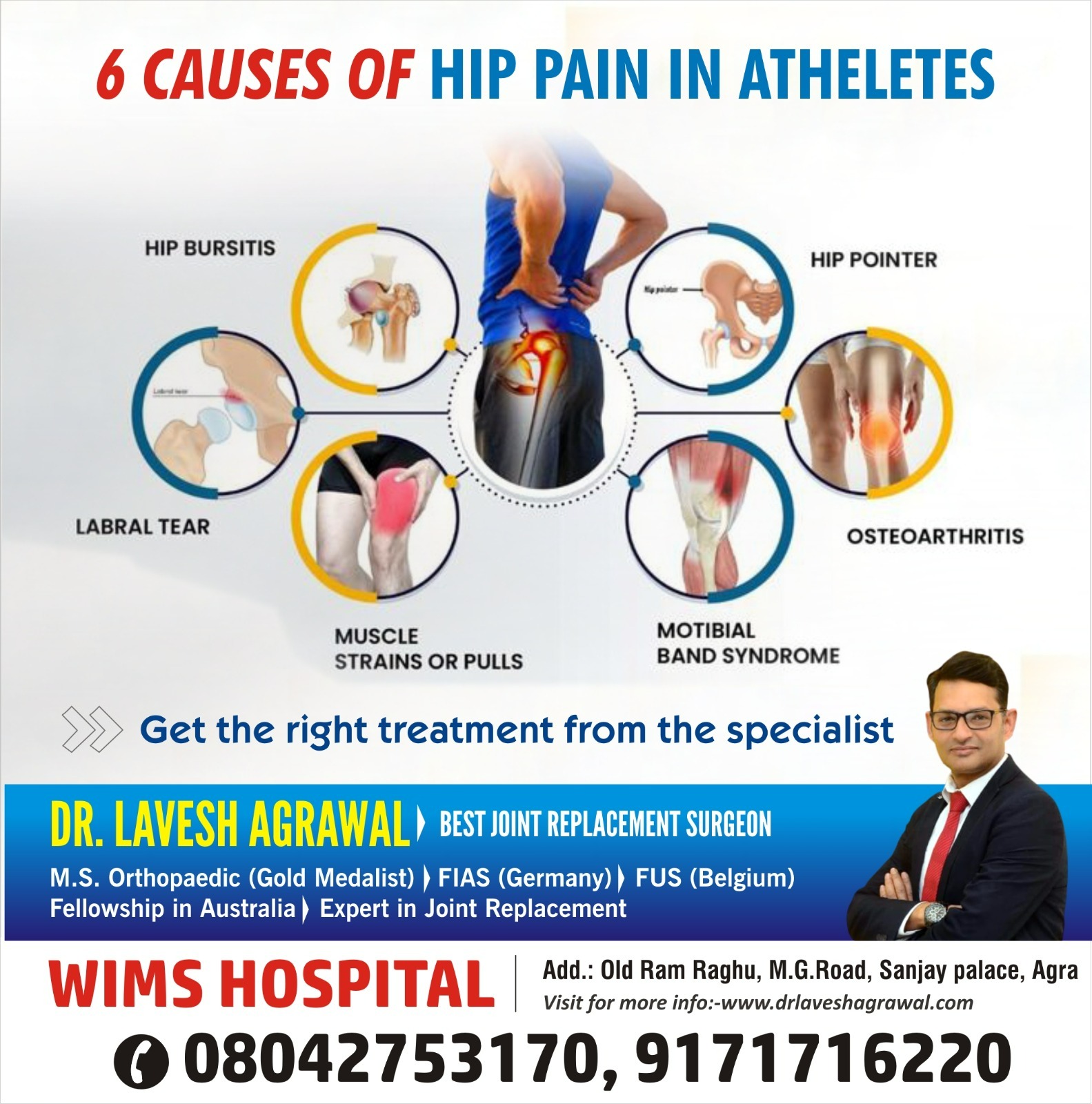 Hip Pain Specialist in Agra Hip Pain Holding You Back? Meet Dr. Lavesh Agrawal, Hip Pain Specialist in Agra at WIMS Hospital 🏥 Expert care for athletes & active individuals to get you back in motion 💪 Common causes of hip pain in athletes: ✔️ Muscle strain or overuse ✔️ Labral tears ✔️ Hip flexor injuries ✔️ Stress fractures ✔️ Tendinitis & bursitis ✔️ Poor posture or improper training With advanced diagnosis, personalized treatment, physiotherapy guidance, and surgical expertise when needed, Dr. Lavesh Agrawal best orthopedic doctor in Agra helps you recover faster and perform better.