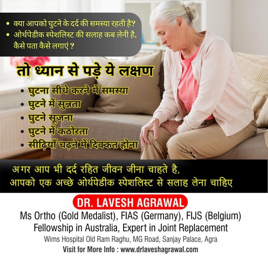 आगरा के सर्वश्रेस्त्रा ओर्थोपेडिक स्पेशलिस्ट घुटने के दर्द को नजरअंदाज न करें, यदि आपको घुटने में दर्द की समस्या बढ़ रही है, तो अन्य लक्षण से भी पहचान सकते है, कि आपको ओर्थोपेडिक स्पेशलिस्ट की सलाह लेने का समय आ गया है। ल्कि जैसे कि घुटना सीधा नहीं होना, सूजन या कठोरता, सुन्नता या सीढ़ियाँ चढ़ने या उतने बैठने में दिक्कत होना आदि है, तो आपको एक अच्छे ओर्थोपेडिक स्पेशलिस्ट की सलाह लेना चाहिए। सही उपचार व आवश्यक सलाह के लिए आगरा शहर में विम्स अस्पताल या चिकित्सा केंद्र में संपर्क कर सकते है जहाँ आगरा के सर्वश्रेस्त्रा ओर्थोपेडिक स्पेशलिस्ट डॉ. लवेश अग्रवाल बैठे है और आप उनसे सही सलाह लेकर अपने घुटने के दर्द का इलाज़ करा सकते है। डॉ. लवेश अग्रवाल आपको जरुरत के मुताबिक सही गाइडेंस , कनी सर्जरी व अन्य विशेषज्ञ परामर्श प्राप्त करने का मार्गदर्शन करेंगे। तो अपना अपॉइंटमेंट बुक करने के लिए अभी संपर्क करे।